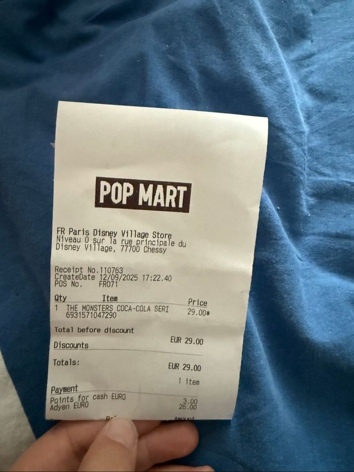 Je l’ai acheté en boutique officielle POPMART le 12/09/2025 suite au tirage au sort (ticket de caisse à l’appui dans la publication + mail du tirage au sort à la demande)
