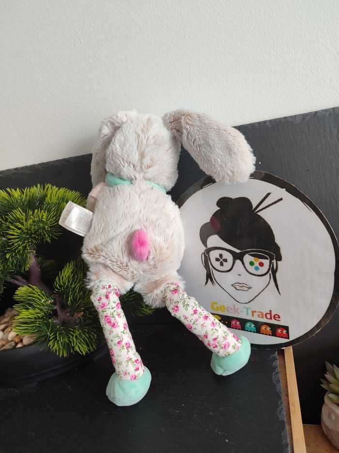 doudou et compagnie peluche lapin choupidoux dc2763 fleur rose vert beige crème
