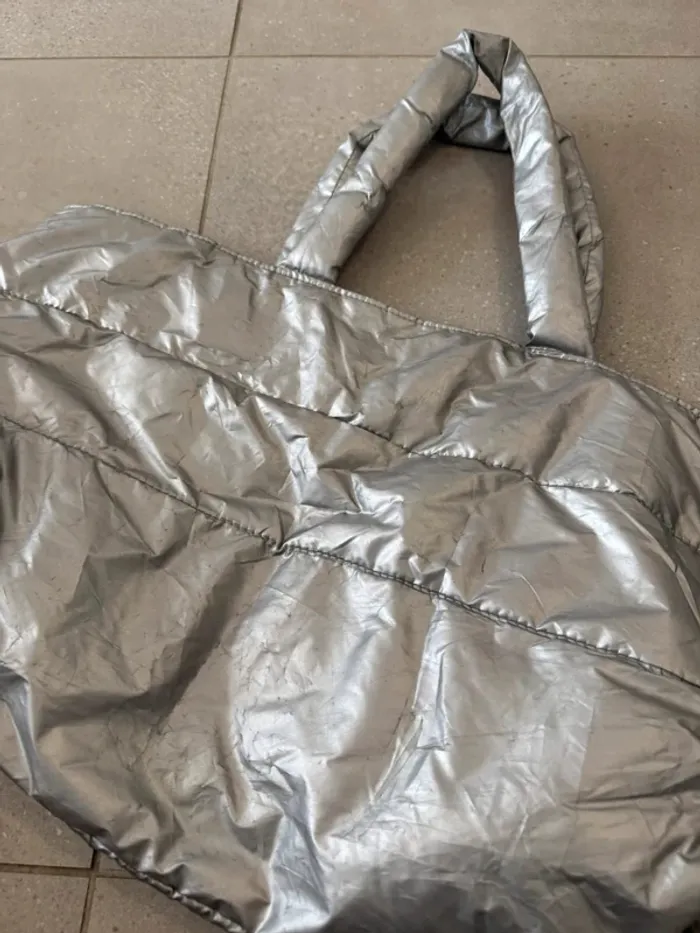 Sac fourre tout argenté Sephora, il y a des traces, 56x28cm - photo numéro 1