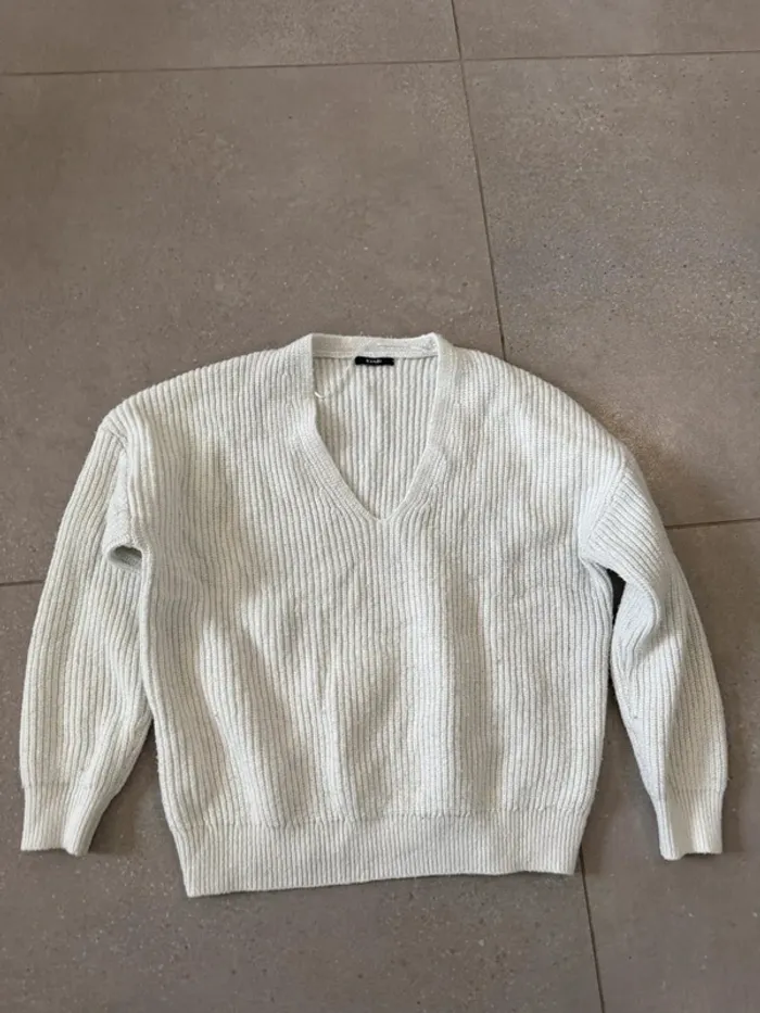 Pull blanc Kiabi, bon état mais il y a des petites bouloches, taille M - photo numéro 1