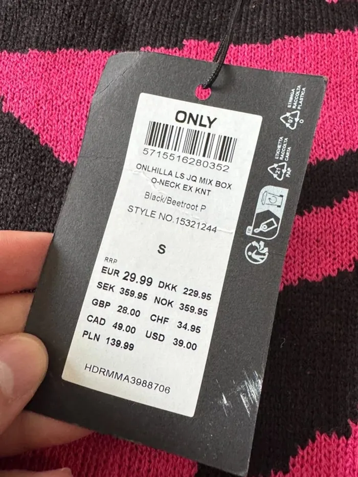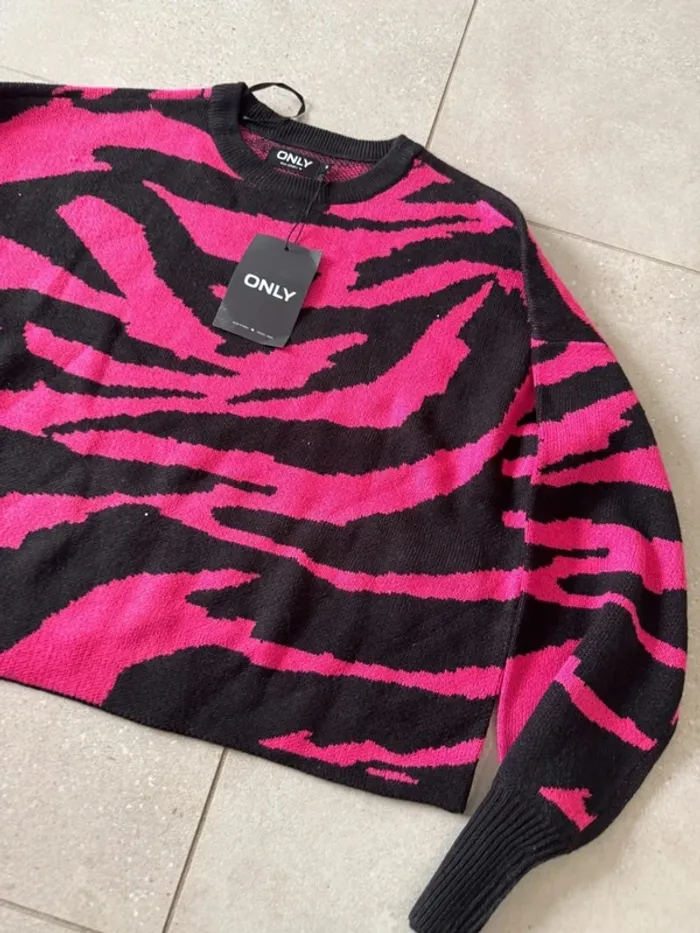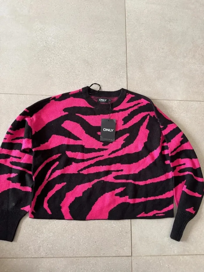 Pull rose et noir Only, taille S, neuf avec étiquette, valeur 30€