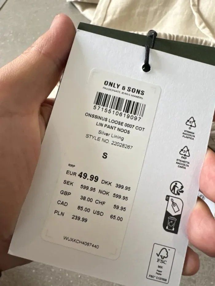 Pantalon beige Only & Sons, taille S, neuf avec étiquette, 39*100cm