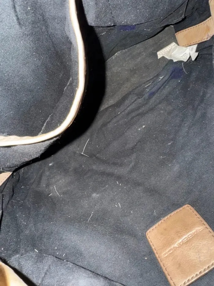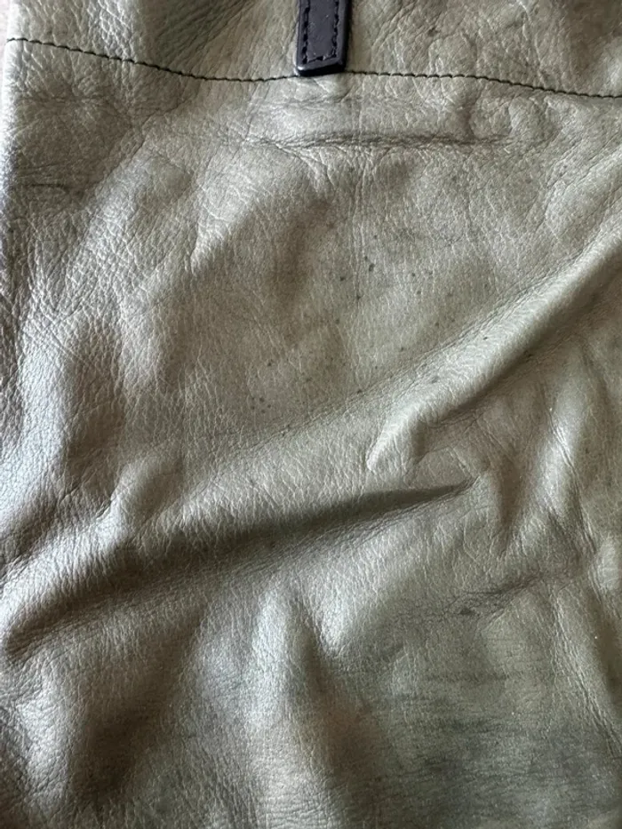 Sac fourre tout vert en cuir Rabeanco, il y a plusieurs marques d'usures, 40x32cm - photo numéro 7