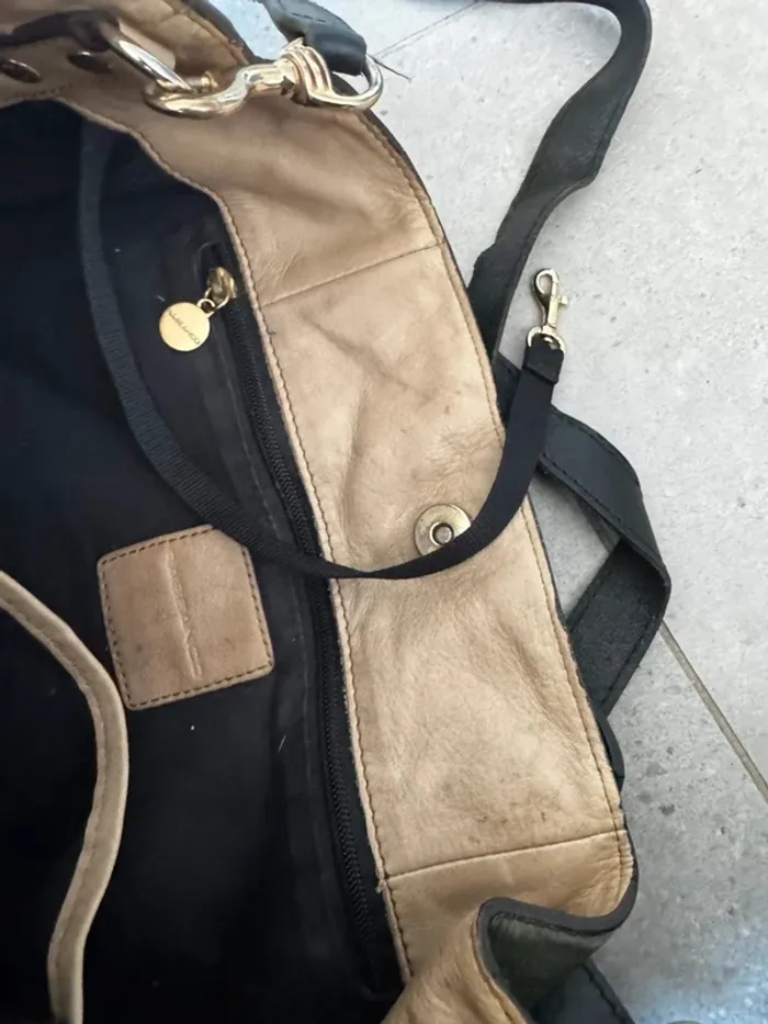 Sac fourre tout vert en cuir Rabeanco, il y a plusieurs marques d'usures, 40x32cm - photo numéro 12