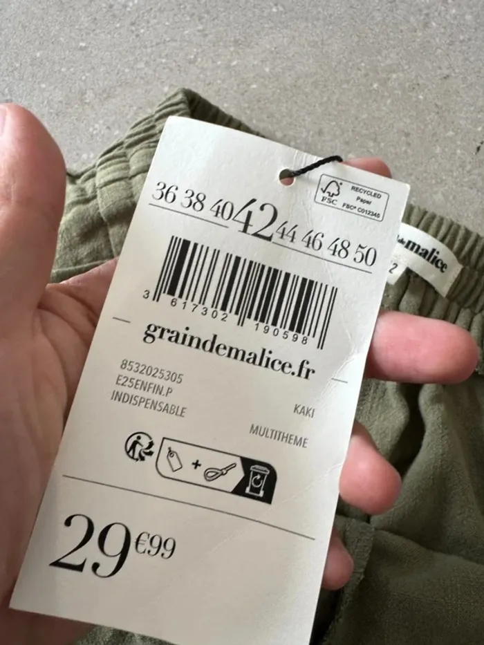 Pantalon kaky Grain de malice, taille 42, neuf avec étiquette
