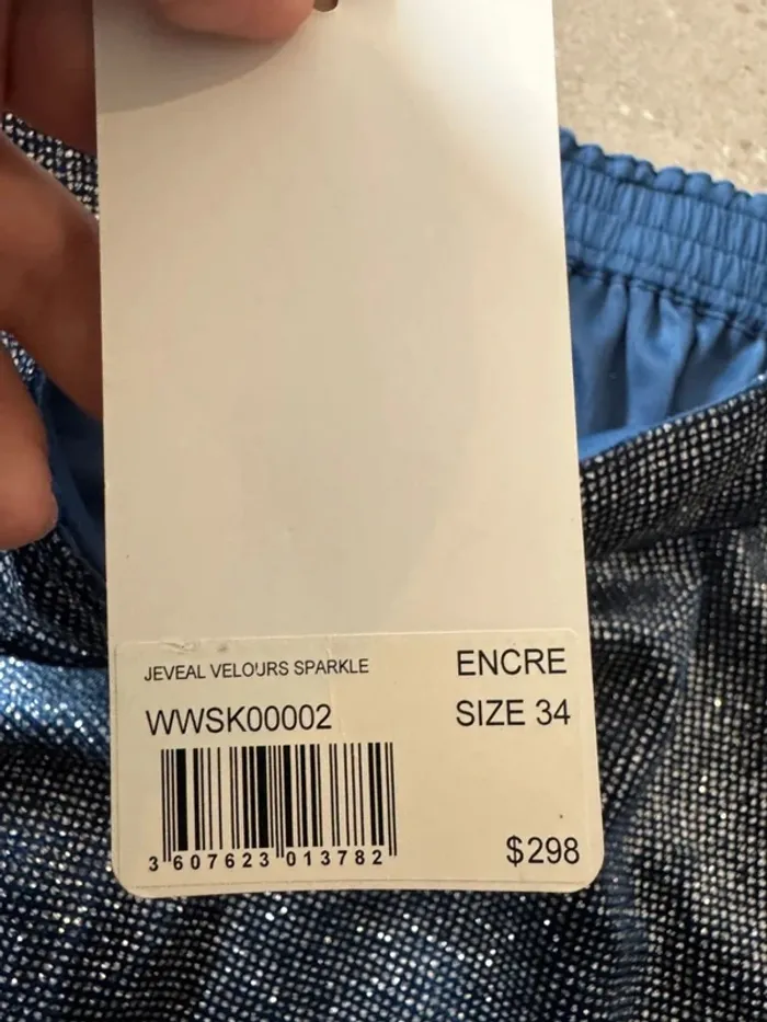 Jupe jeaveal velours sparkle encre Zadig & Voltaire, taille 34, neuve avec étiquette, valeur 298$ 34*39cm (mv1985)
