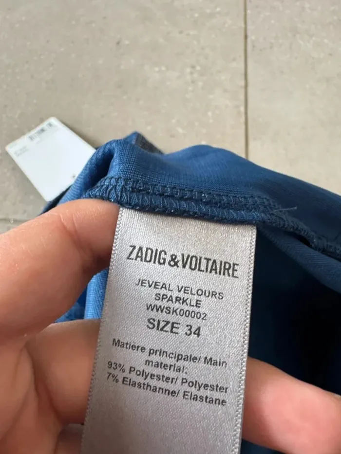 Jupe jeaveal velours sparkle encre Zadig & Voltaire, taille 34, neuve avec étiquette - photo numéro 1