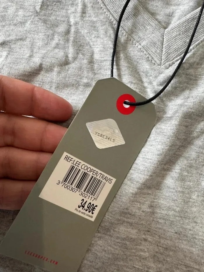 T-shirt gris Lee Cooper, taille L, neuf avec étiquette, valeur 35€