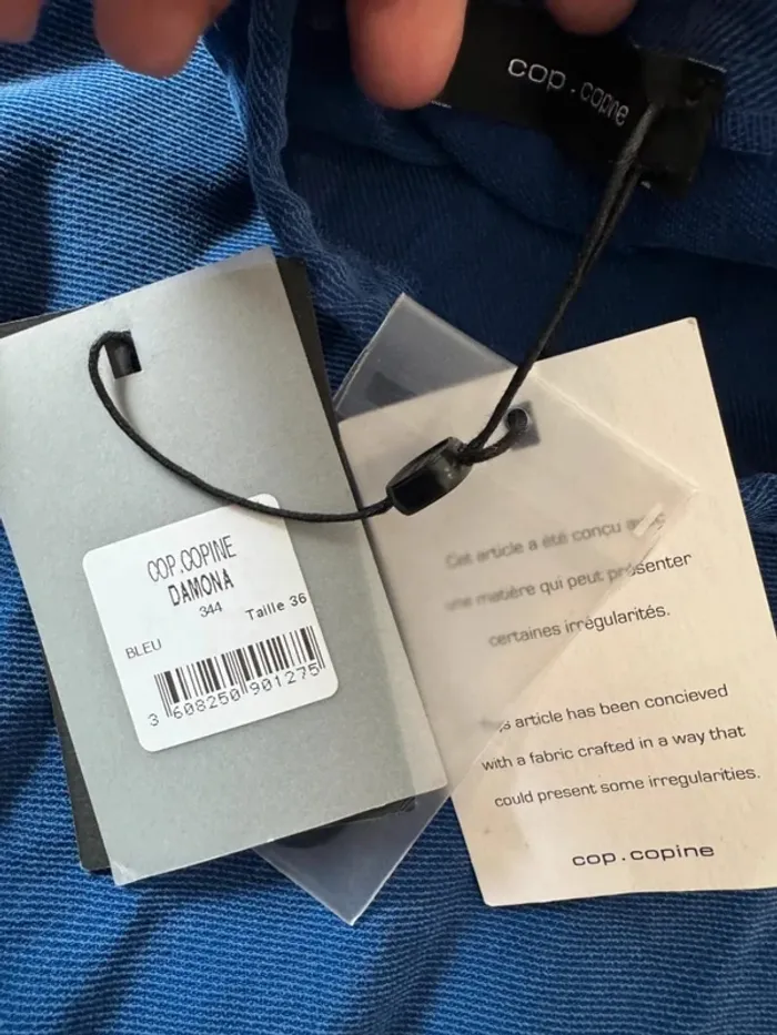 Robe bleue Cop.Copine Damona, neuve avec étiquette, taille 36 80cm longueur