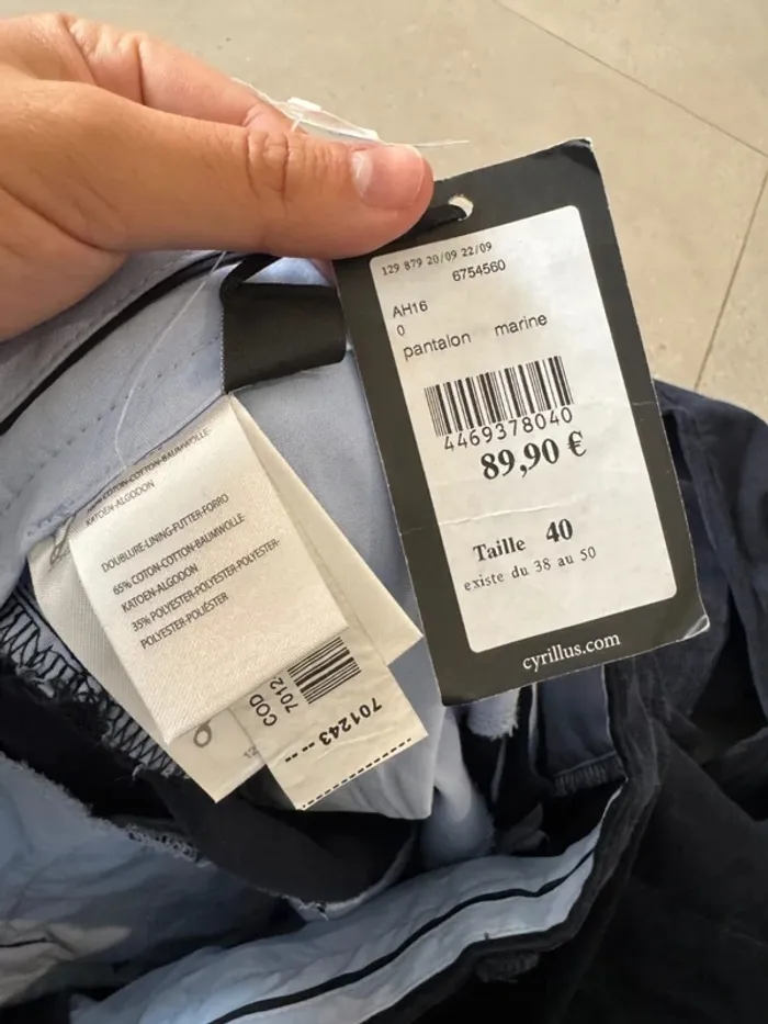 Pantalon navy Cyrillus, neuf avec étiquette, taille 40, valeur 90€ 42*110cm - photo numéro 2