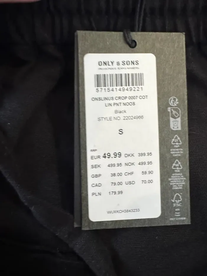 Pantalon noir Only & Sons, taille S, neuf avec étiquette valeur 50€ 38x100cm