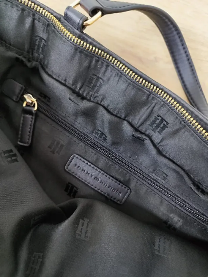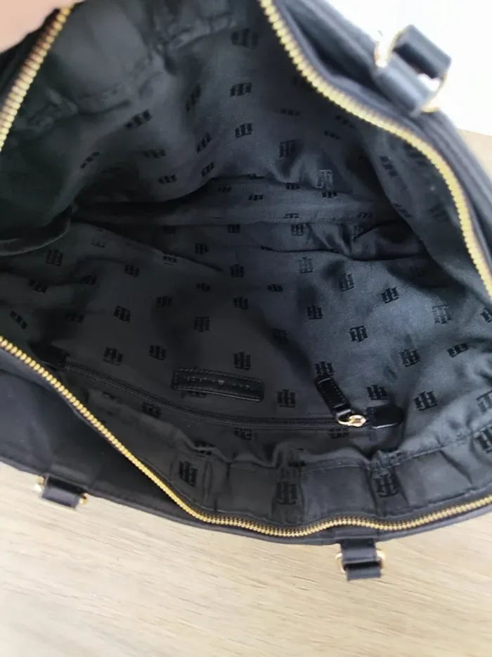 Sac fourre tout Tommy Hilfiger noir, bon état mais quelques marques dans les coins, 48x32cm - photo numéro 6