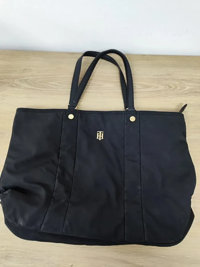 Sac fourre tout Tommy Hilfiger noir, bon état mais quelques marques dans les coins, 48x32cm - photo numéro 1