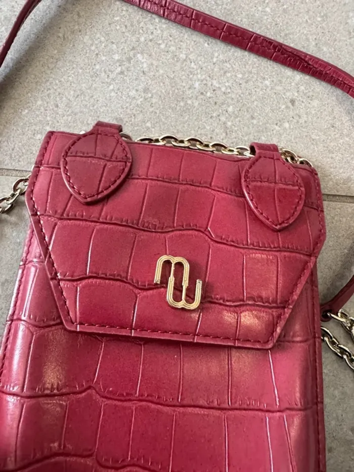 Pochette téléphone en cuir  à bandoulière bordeaux Maje, bon état - photo numéro 8