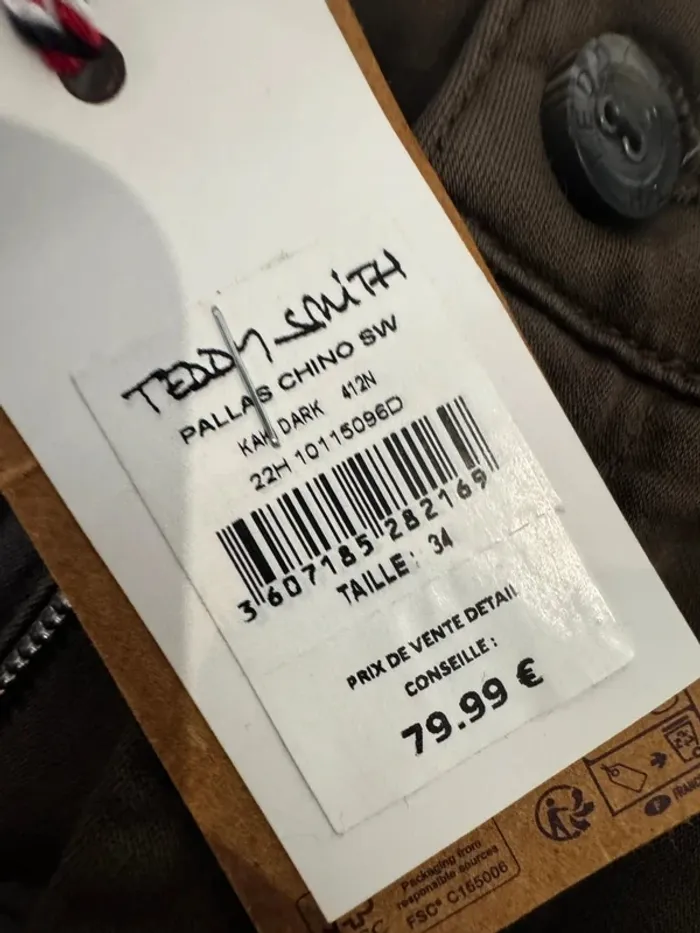 Pantalon marron Teddy Smith, neuf avec étiquette, taille 44x105cm valeur 80€ - photo numéro 1