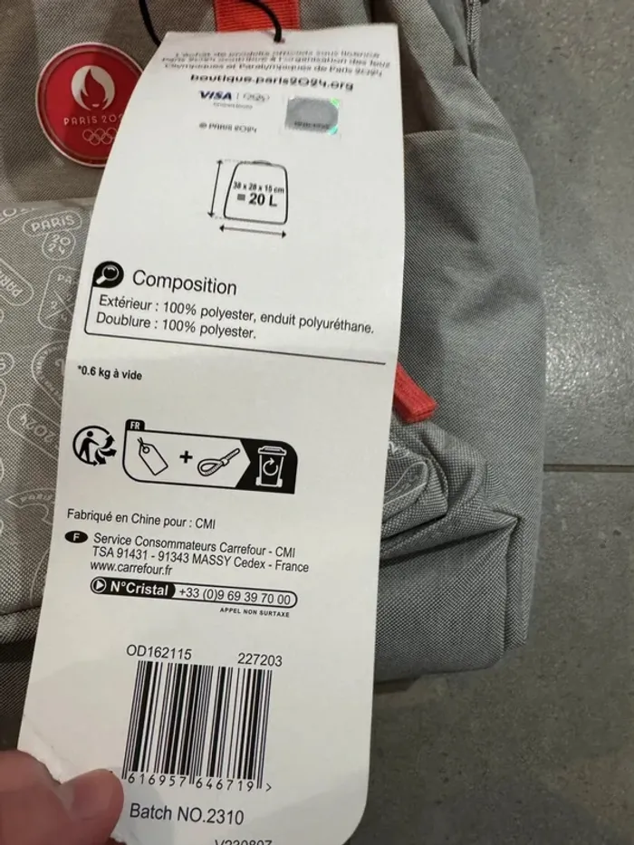 Sac à dos Paris 2024, 20L 38x28x15cm, neuf avec étiquette - photo numéro 4