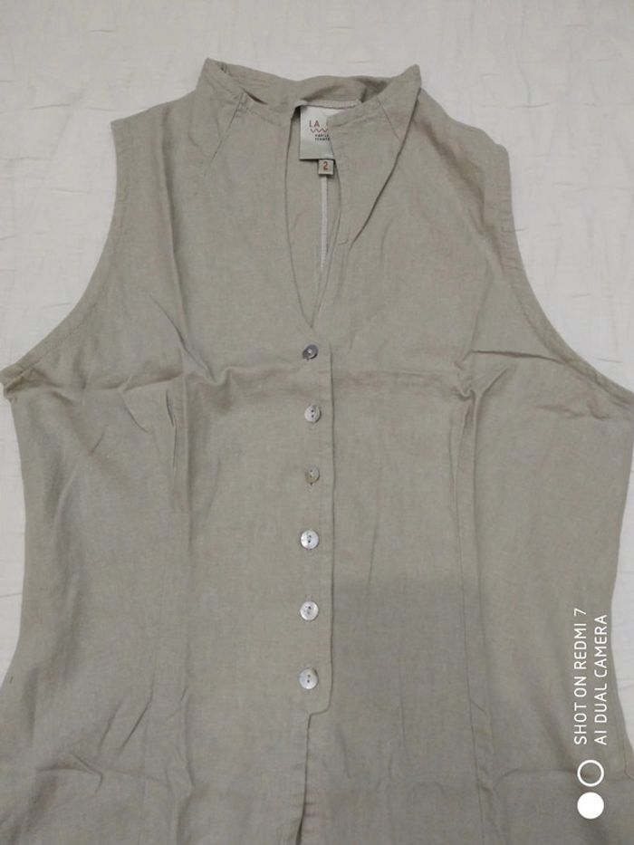Tunique blouse La city Beige Lin Boutons nacre Col mao Taille 2 : 36 38 #angiolinolino_femme
