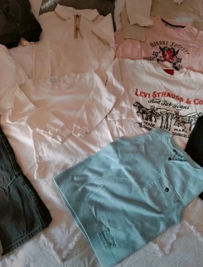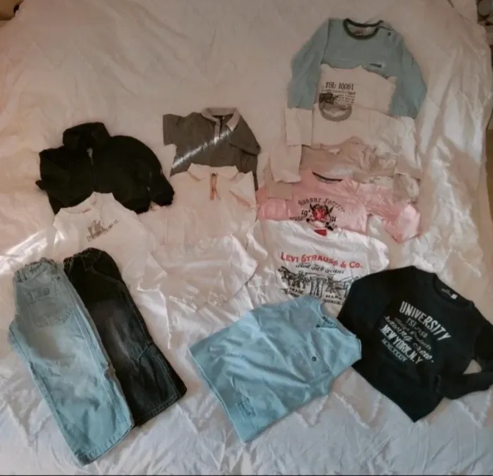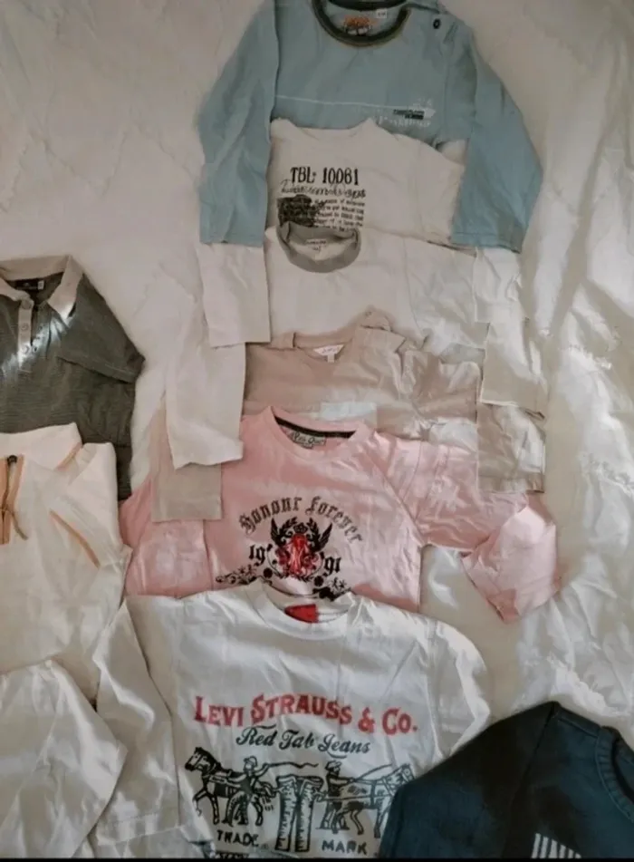 Lot mi saison 7 t-shirts manches longues 2 pantalons réglables à la taille 1 gilet a zip 1 pull 2 polos manches courtes 1 marcel 1 débardeur Marques : Levis, Éliane et lena, Okaïdi Timberland, Okaïdi, petit bateau, sergent major ... #stephmailgarcon4ans Regardez le reste de mon dressing, vous trouverez sans doute une pièce à assortir et profiterez de réductions...😉🎁