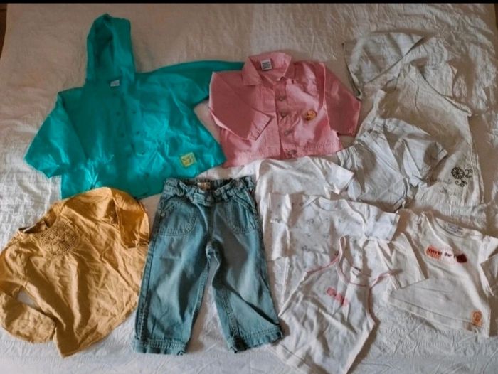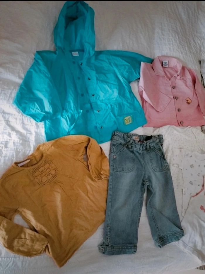 Lot mi saison 1 imperméable 1 veste 1 blouse 1 t-shirt manches longues 1 ensemble robe réversible, culotte et fichu 1 jean pantacourt 3 petites chemises Marques : 3 pommes, de dpam, vert baudet, disney.... #stephmailfille2ans Regardez le reste de mon dressing, vous trouverez sans doute une pièce à assortir et profiterez de réductions...😉🎁