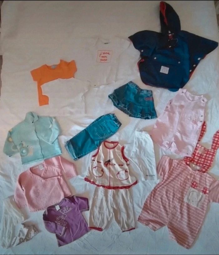 Lot composé de 15 pièces : 1 poncho 2 gilets 1 ensemble 1salopette 1 combinaison 1 jean large 1 jupe 1 t-shirt manches longues 2 t-shirts manches courtes 1 legging 1 bodies manches courtes 1 paire de collants 1 paire de chaussettes Marques : Dpam, interdit aux grands, cocoon... #stephmailfille12mois Regardez le reste de mon dressing, vous trouverez sans doute une pièce à assortir et profiterez de réductions...😉🎁