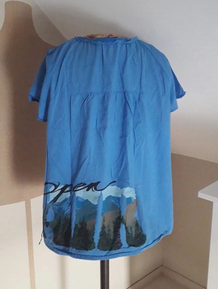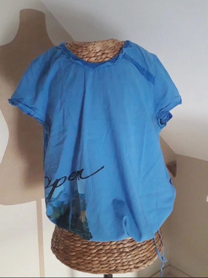 Blouse à manches courtes A porter resserrée à la taille ou en forme trapèze Impression sur un côté devant et sur l'autre dans le dos Taille 42/44 mais indiqué taille L #stephmailfemme42 #stephmailfemme44 Regardez le reste de mon dressing, vous trouverez sans doute une pièce à assortir et profiterez de réductions...😉🎁