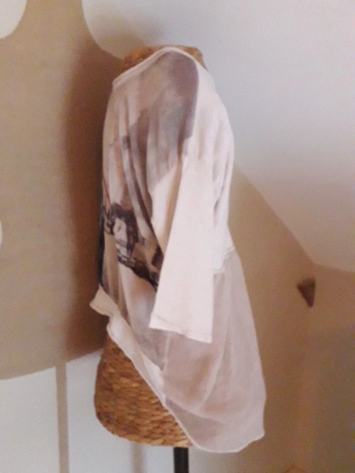 Blouse asymétrique En voile et maille Impression femme sur le devant Court devant et longue derrière pour une jolie silhouette avec un jean slim #stephmailfemme46 Regardez le reste de mon dressing, vous trouverez sans doute une pièce à assortir et profiterez de réductions...😉🎁