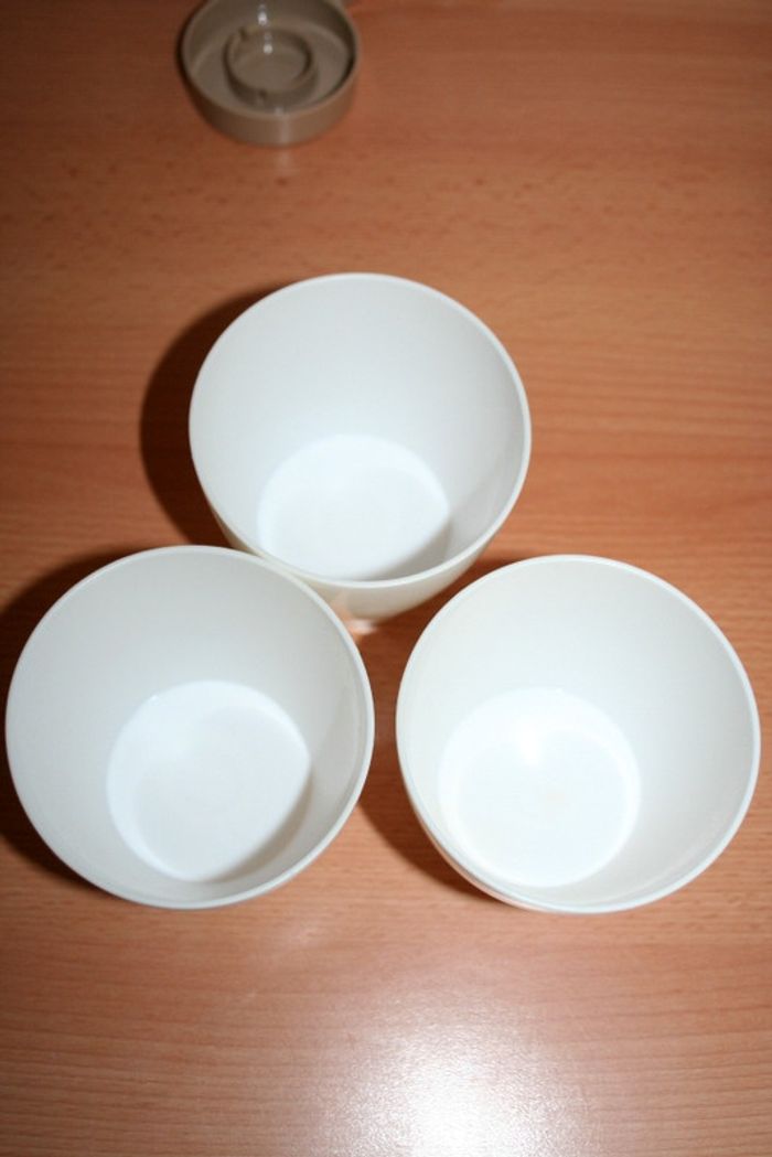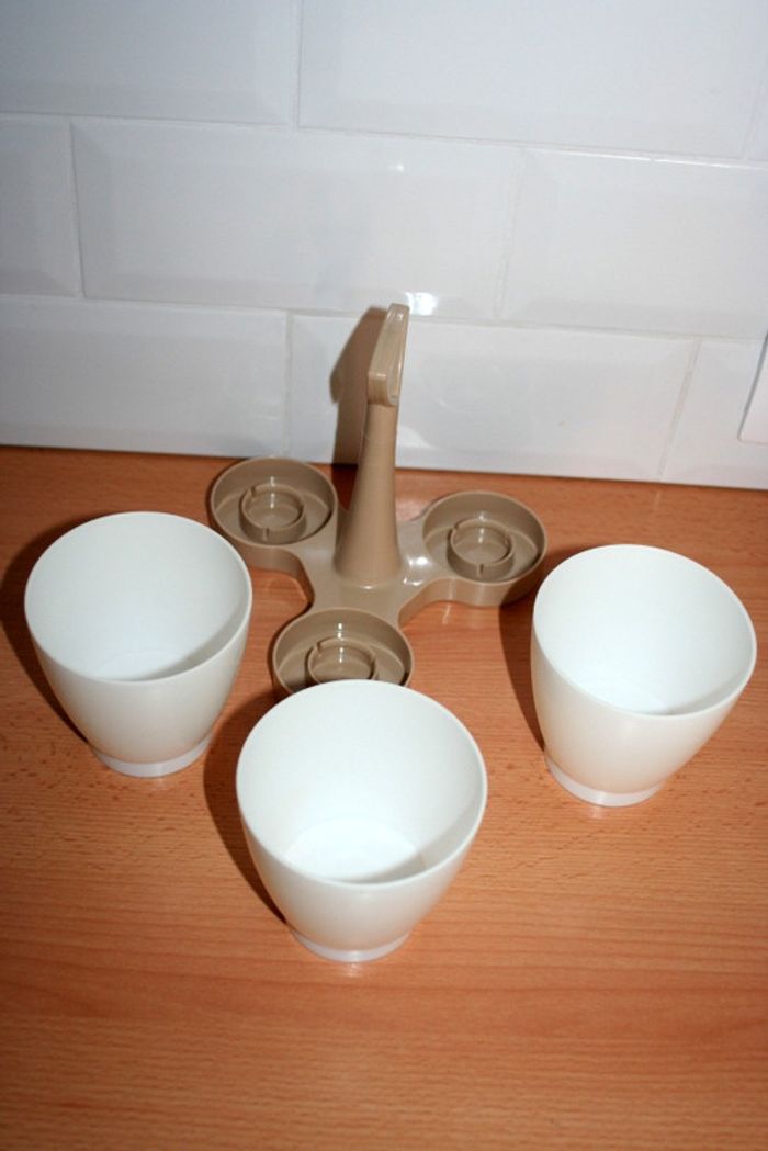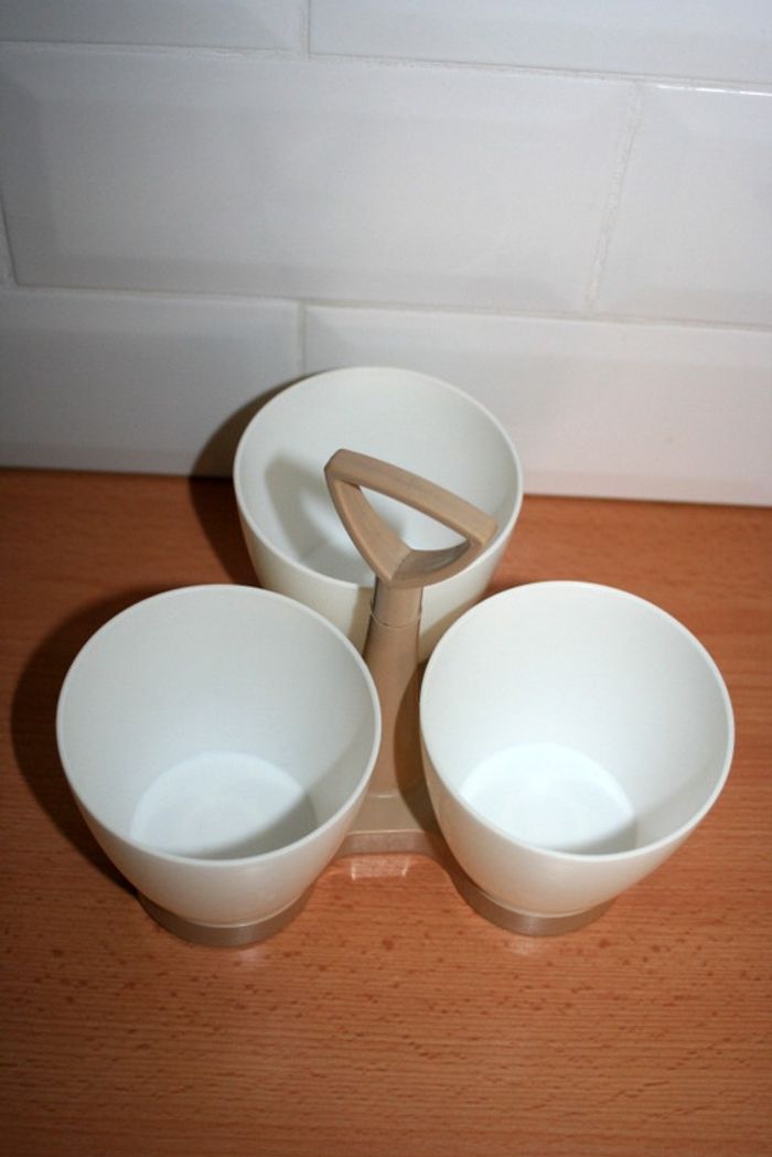 Trio apéritif vintage de chez Tupperware, bols blancs et support beige, je n'ai plus les couvercles d'origine, 200g