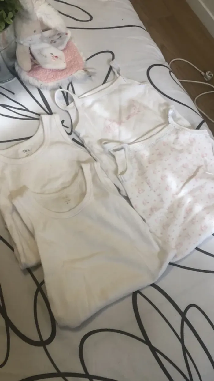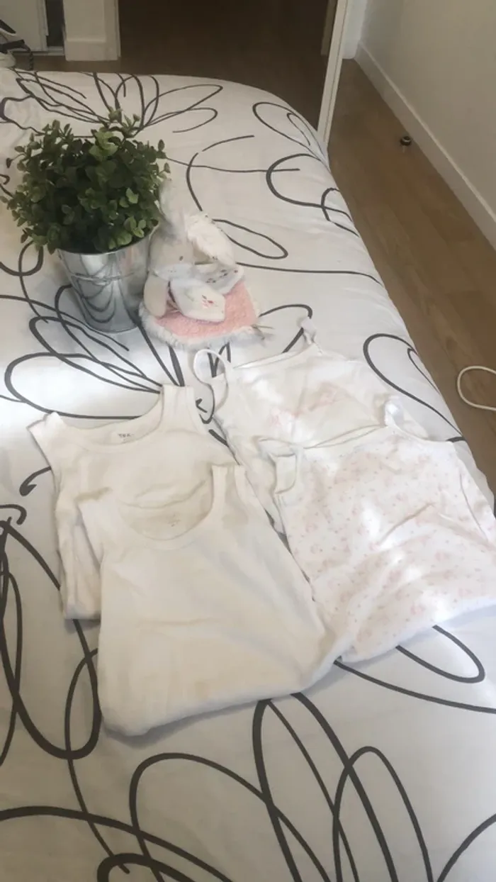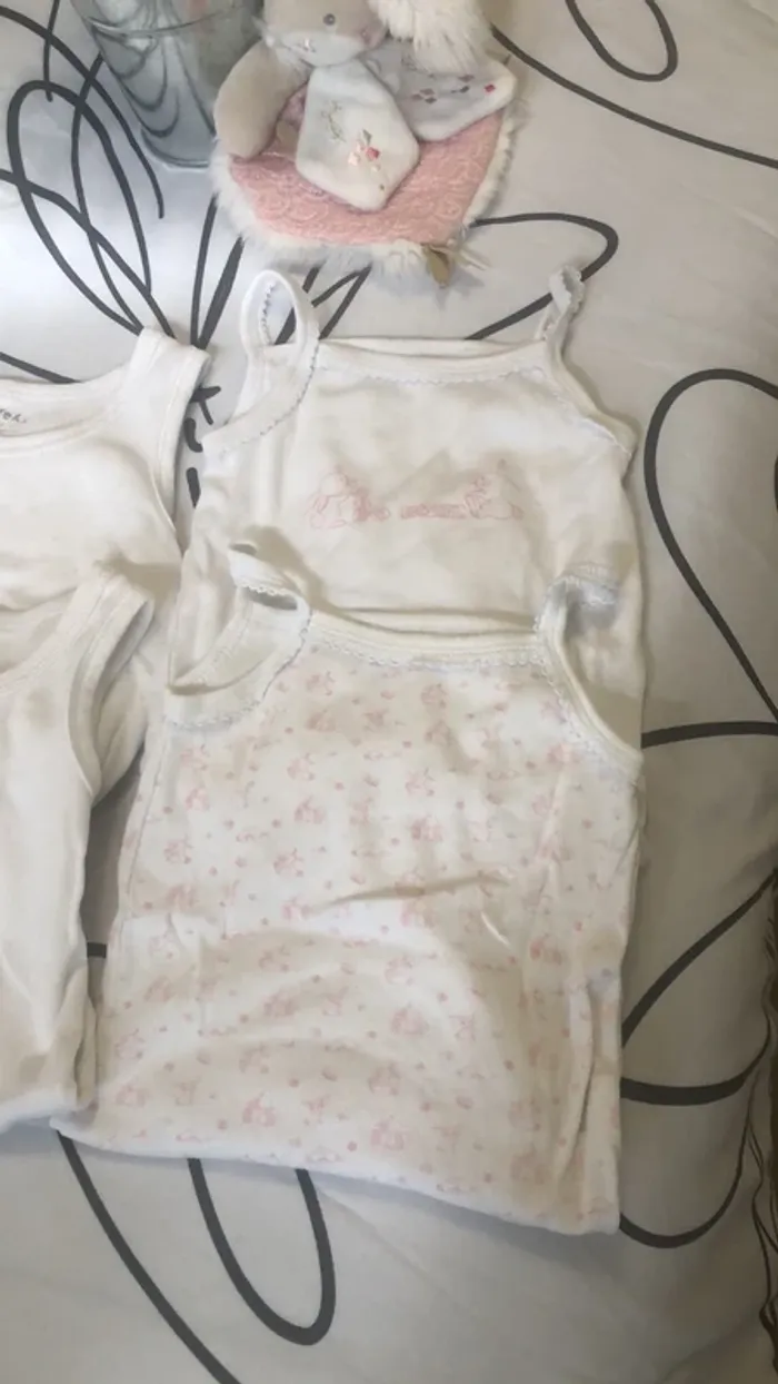 2 bodies débardeur Tex (dont 1 avec petite tache , voir photo) 2 bodies fines bretelles kitchoun 18 mois #elody.19-fille18mois