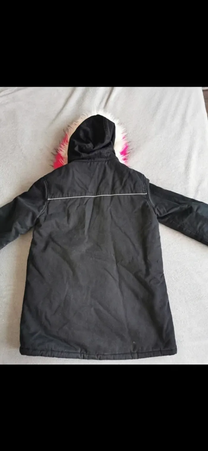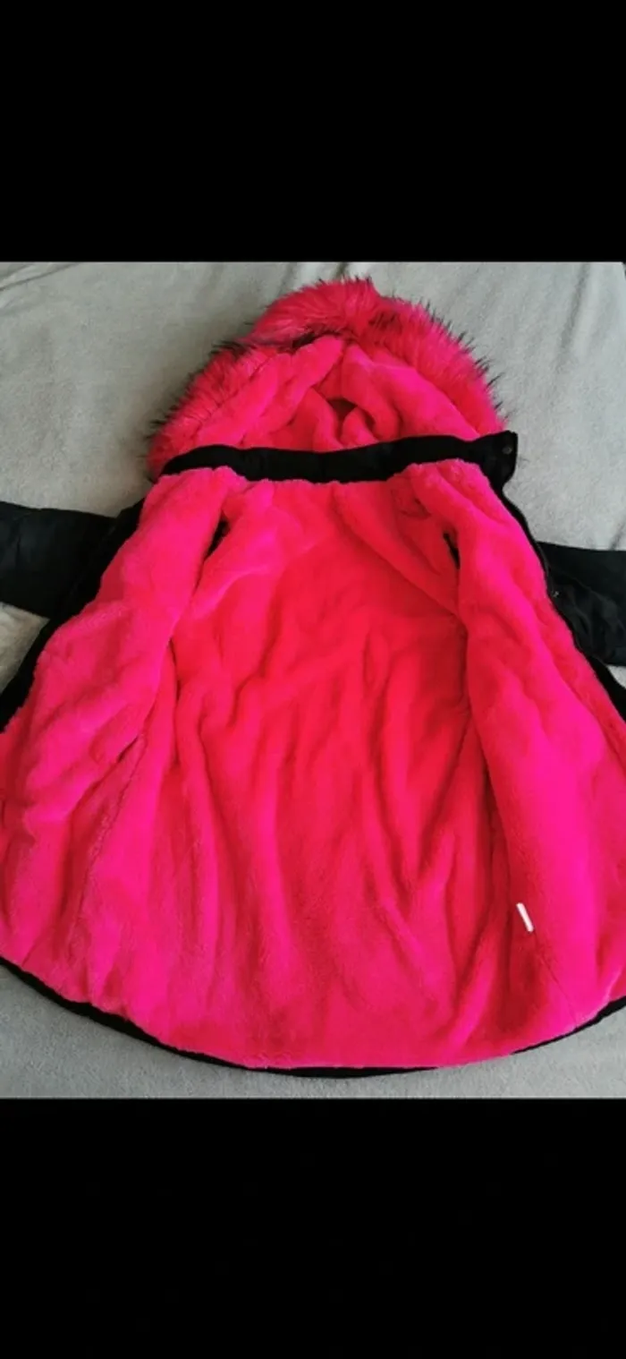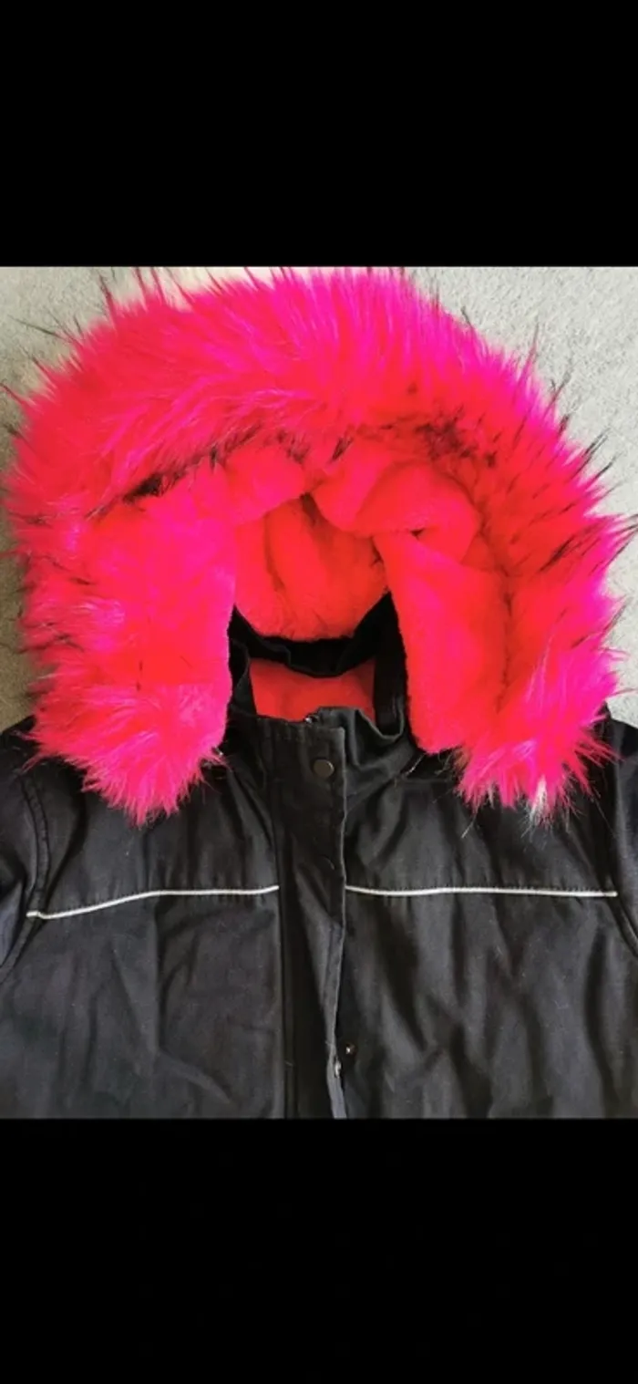 Veste hiver taille S oversized, capuche amovible, couleur noire /rose flashy, très bon état.