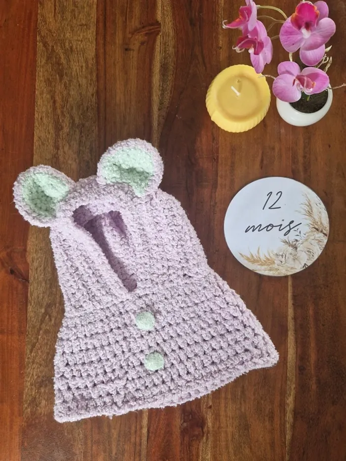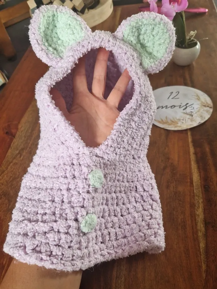 Cagoule avec oreilles ourson fait main au crochet - photo numéro 2