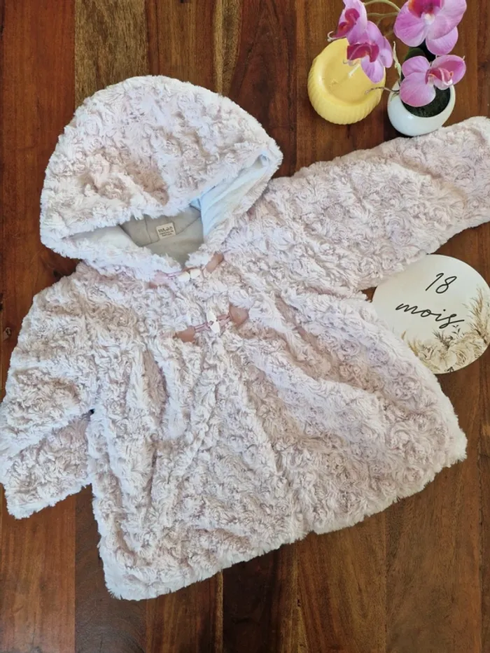 Manteau à poils très doux effet boutons de rose 18 mois - photo numéro 1