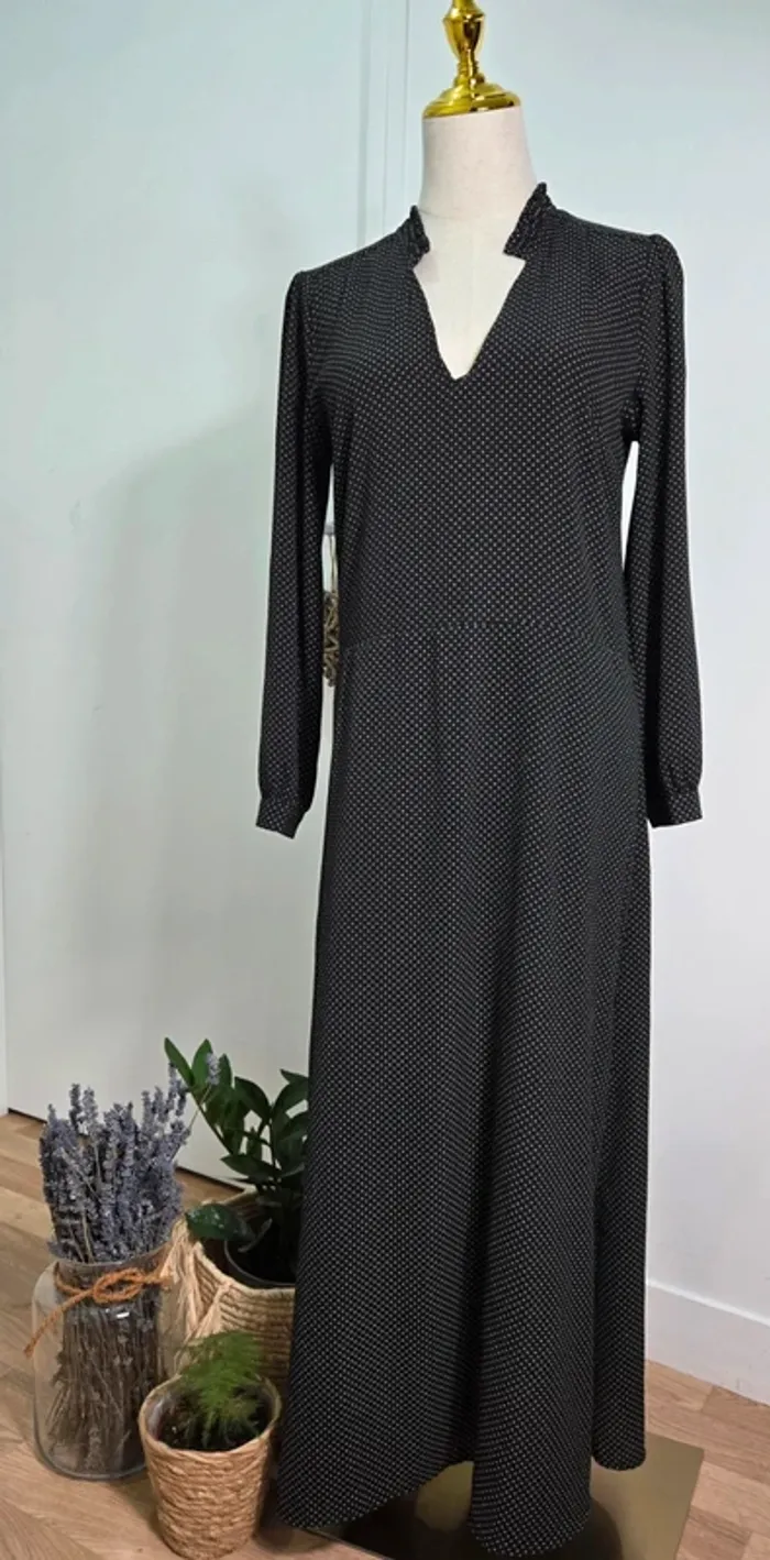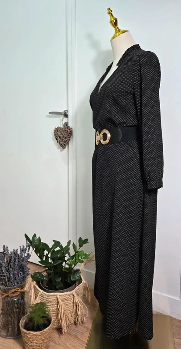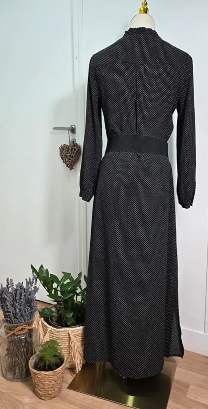 ☆robe Indi&Cold♡ ☆taille S/36 ☆noir à pois crème ☆aisselles à aisselles 47cm ☆épaule jusqu'au bas 124cm ☆la ceinture n’est pas vendue avec ☆parfait état 👌 #letty282tailles #letty282taille36 #robefemme #robelongue #robeàpois