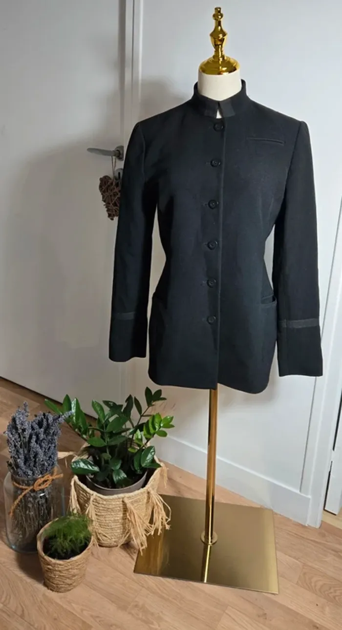 ☆veste/blazer Caroll♡ ☆taille M/38 ☆noir ☆aisselles à aisselles 45cm ☆épaule jusqu'au bas 69cm ☆vintage très belle qualité ☆la ceinture n’est pas vendue avec ☆entièrement doublée acetate ☆polyester laine lycra ☆imperfections quelques accros à peine visible (voir 2 dernières photos) 📦envois rapide et soigné #letty282taillem #letty282taille38 #vintagedressing #vintage