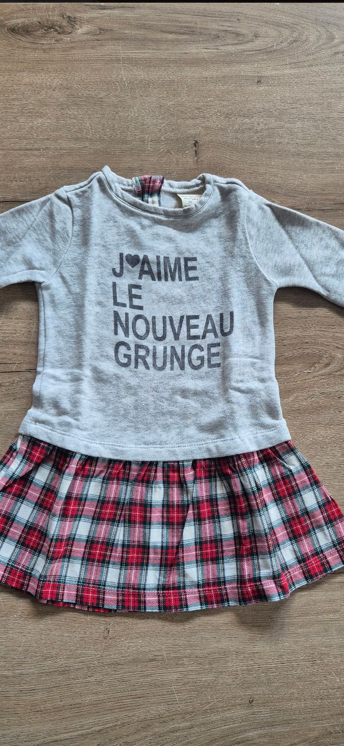 Robe à manches longues avec jupe à carreaux Zara taille 18-24 mois (86cm) Bon état (petite tâche dans le dos, voir dernière photo)