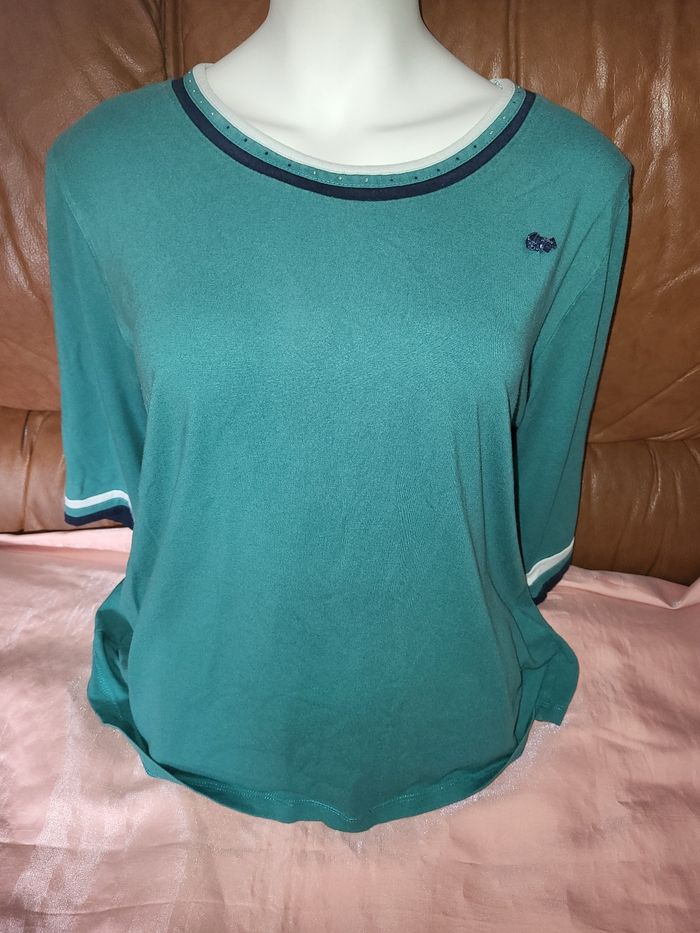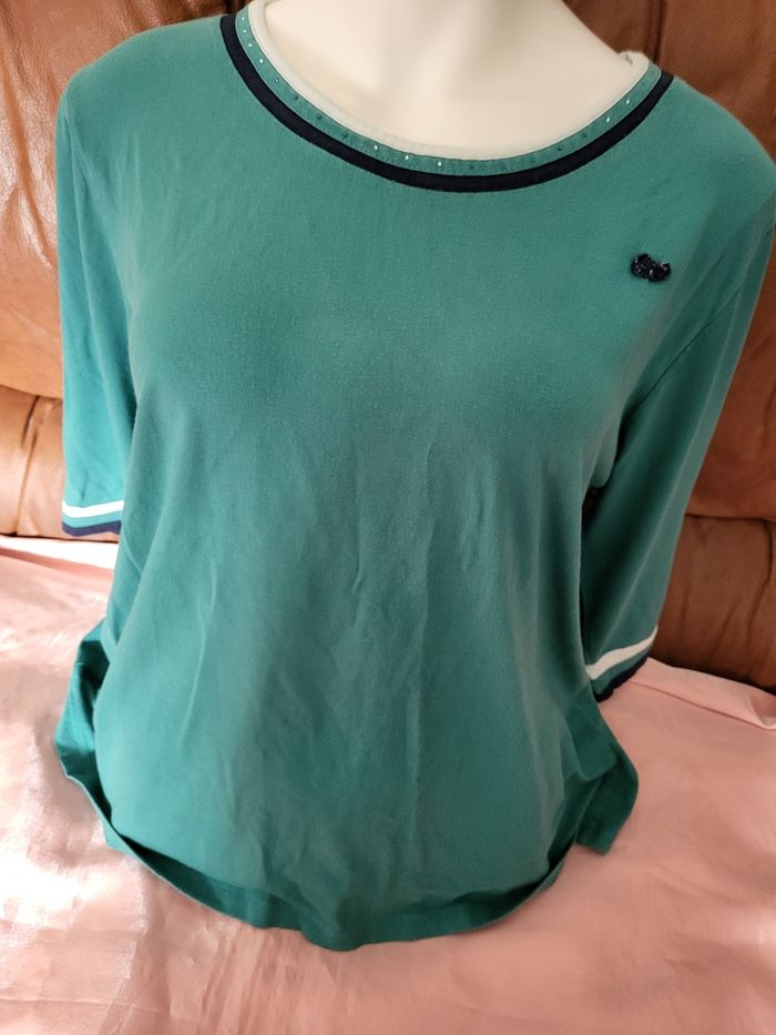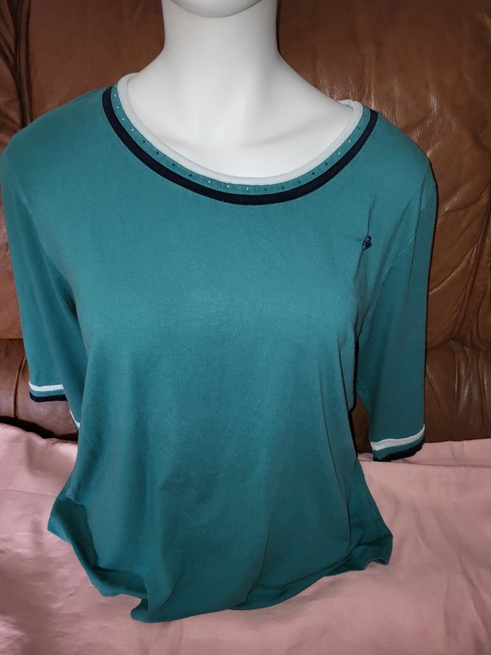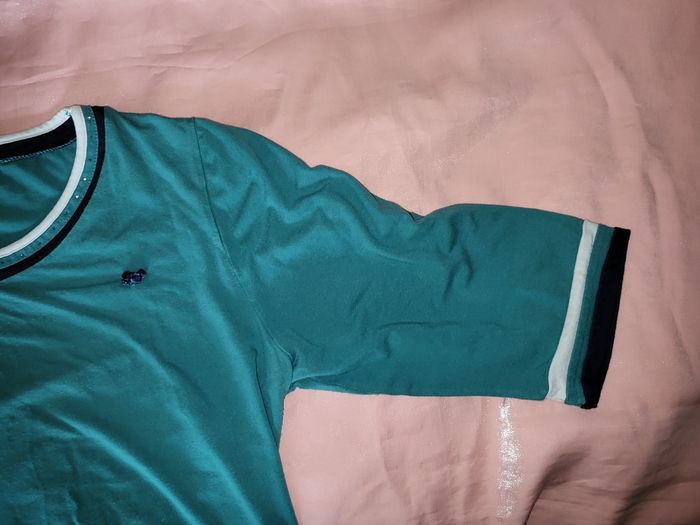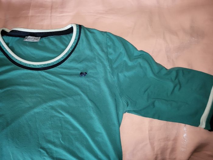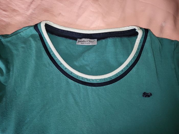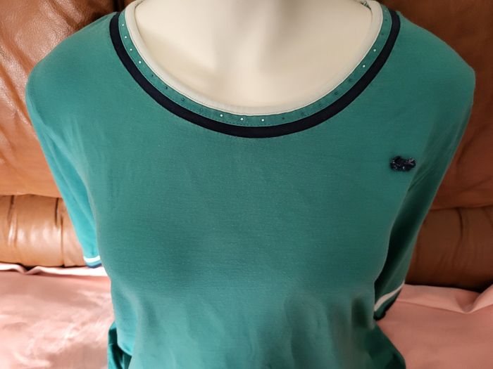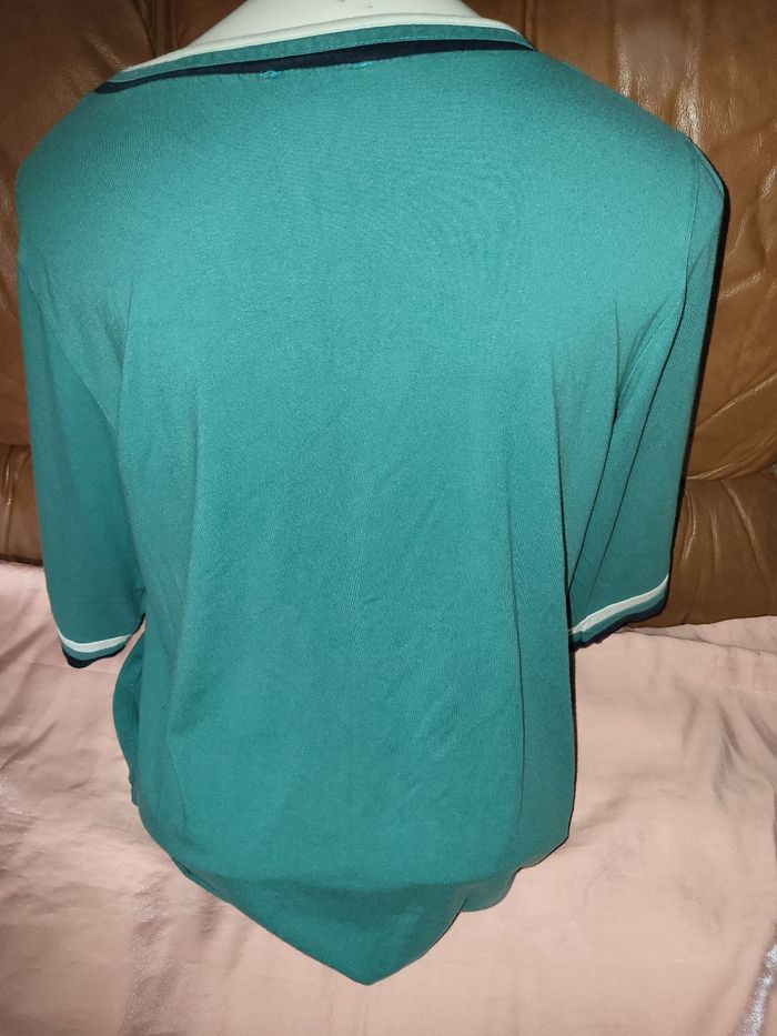 Maillot vert blanc .t 44 long 60 cm .larg aisselles 54 cm .extensible sur soi., coton elasthanne