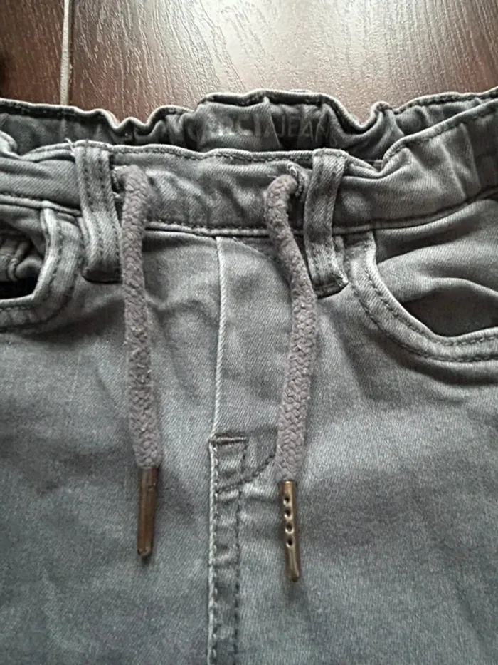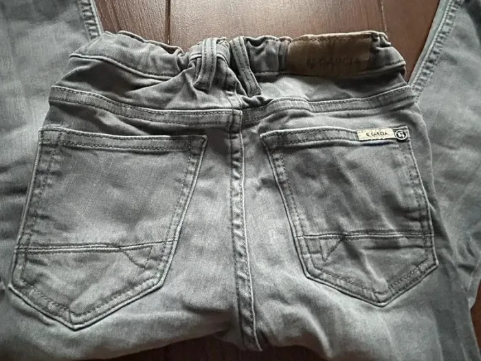 Jean slim gris garcon à taille élastiquée fermeture cordon marque Garcia. Taille 104 cm soit 4ans. Coupe slim, élasthanne. Fermeture par resserrage cordon à la taille. La taille du jean peut être ajustée à l'intérieure par 2 boutons sur élastique. cf photos. Composition: Coton, polyester, élasthanne--> cf photo de l'étiquette. En très bon état, juste l'étiquette en haut à droite derrière du jean est un peu abimée "froissée" --> cf photos. Tout le reste du jean est en très bon état. Valeur boutique 40 € #am5785_garçon_4ans #am5785_garçon_Garcia #garcia #garciagarcon #garciagarcon4ans #jeangarciagarcon #jeanslimgarcon4ans #jeanslimgarciagarcon #jeangarcon4ans