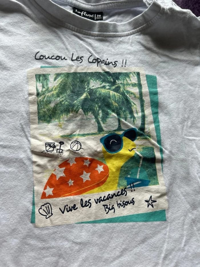 T-shirt manches courtes garcon blanc motif thème vacances multicolore Influx taille 36 mois - photo numéro 1