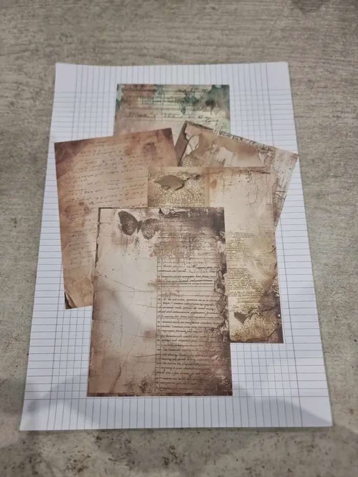 Lot de 5 papier style lettre ancienne, idéal création scrapbooking, cahier ou autre activité manuelle. Format 10 x 14 cm Lot neuf