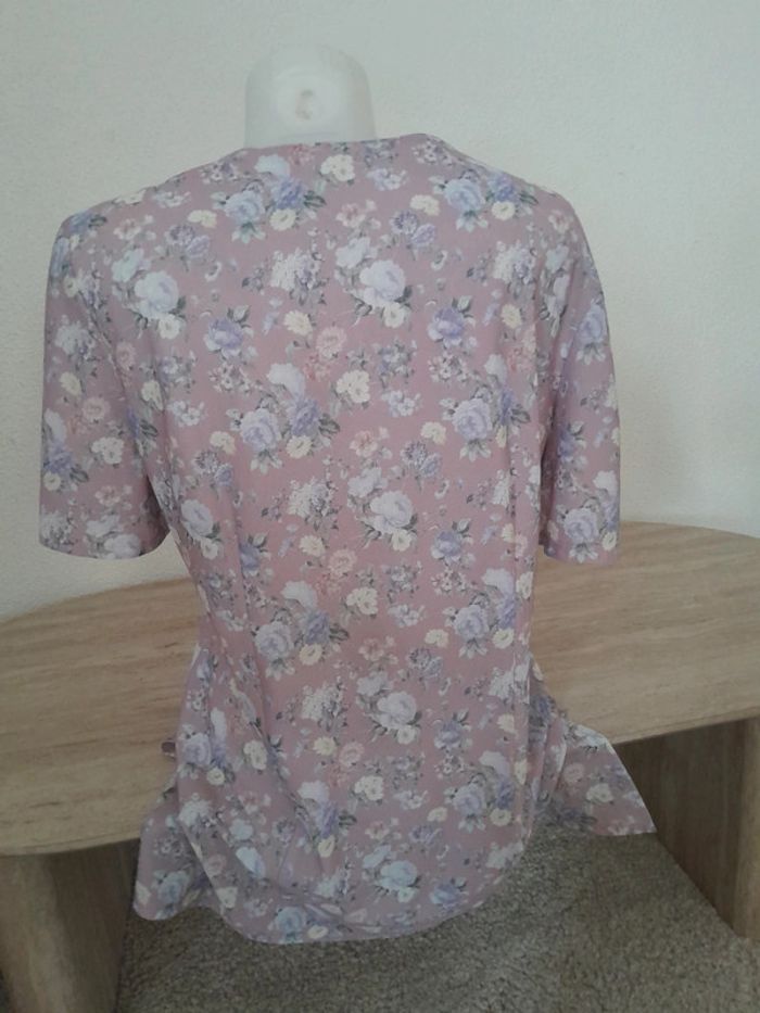 Neuf Blouse manches courtes Rose fleurs Aucune étiquette Mesure dans les photos