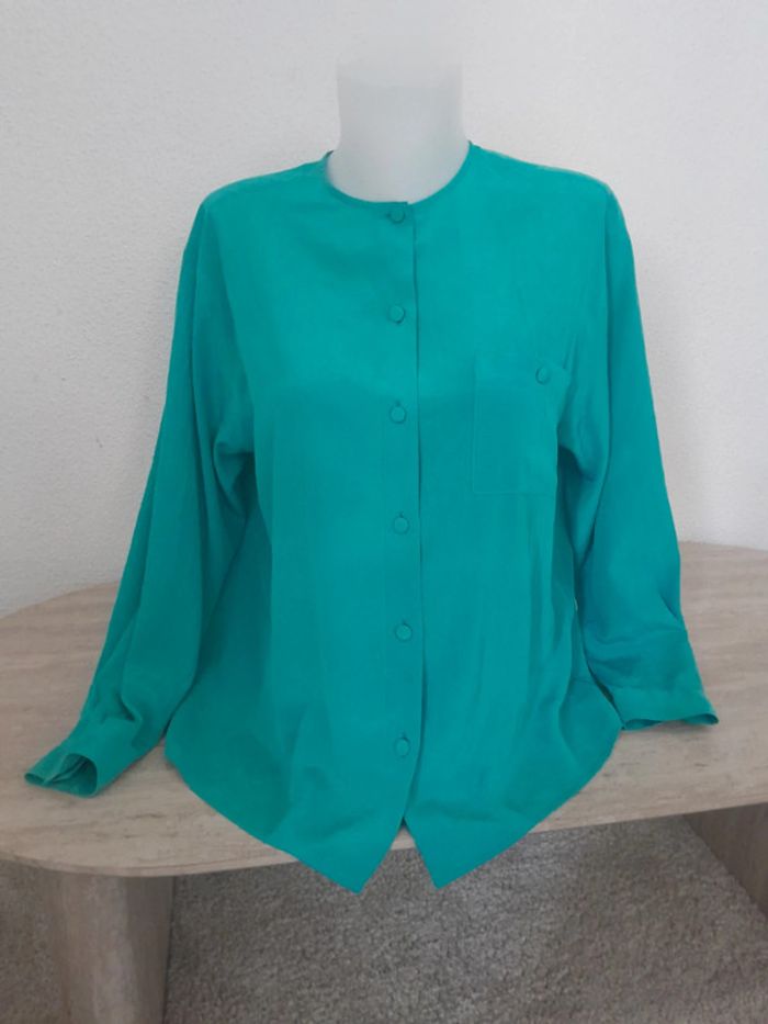 Excellente état Jolie blouse boutonné fluide Manches longues Couleur vert bleu