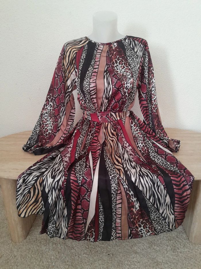Neuf Très belle robe satiné oversize manches bouffantes Ceinturé Taille unique jusqu'à 44