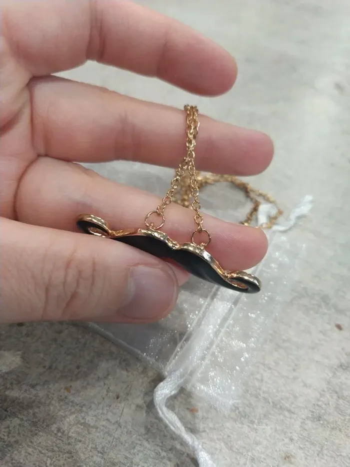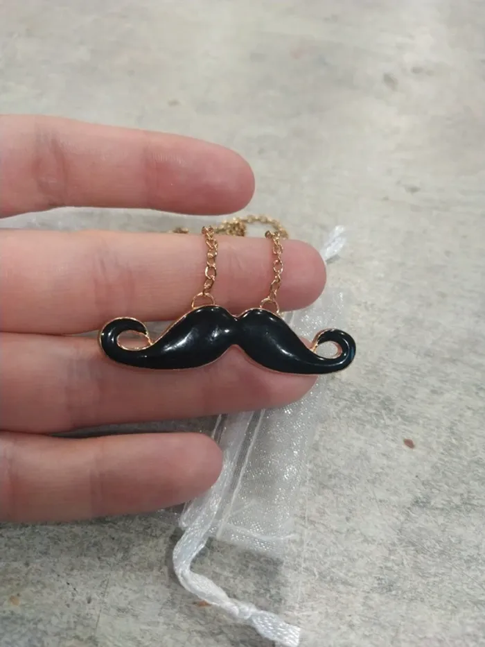 Collier fantaisie moustache doré et noir Taille de la chaîne 42 à 47 cm