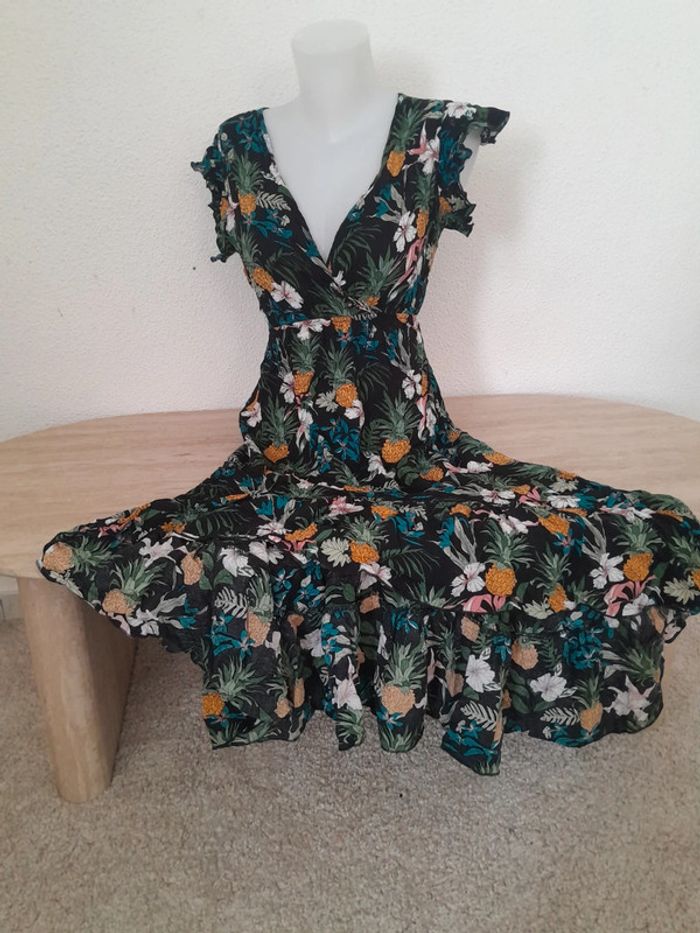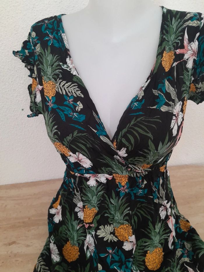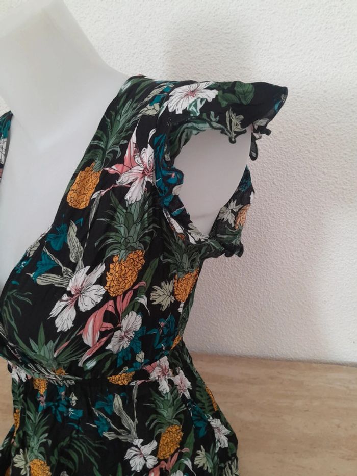 Robe en excellente état Fluide légère Robe fleurie Taille Cintré Manches courtes plissées