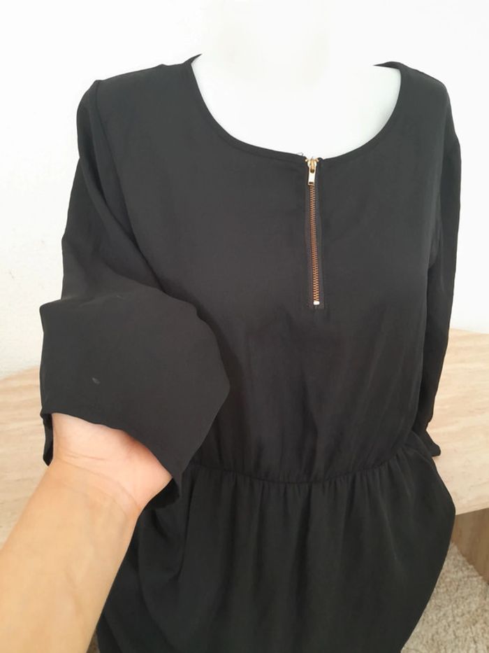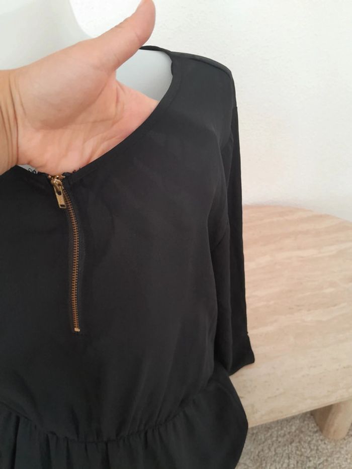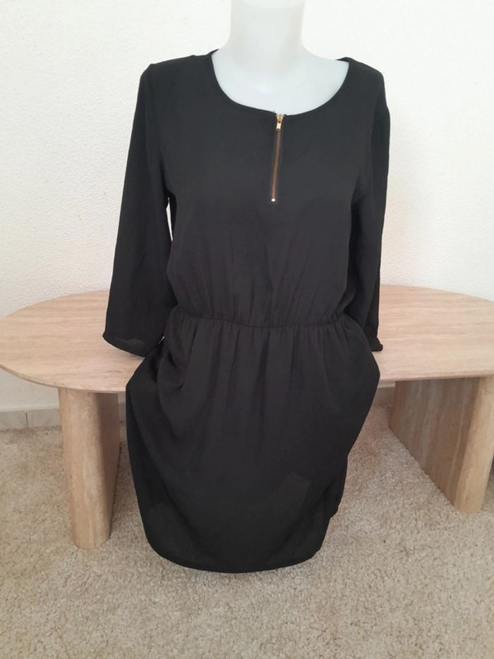 Très bon état Robe noir Fluide légère et cintré Jupon doublé Haut légè Taille élastique Fermeture éclair devant doré