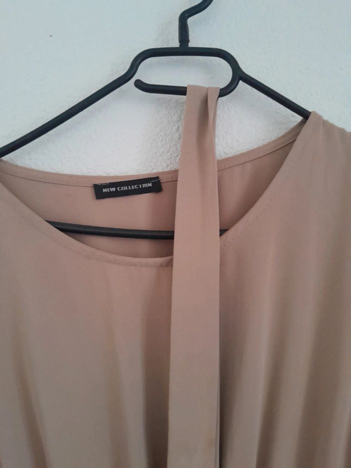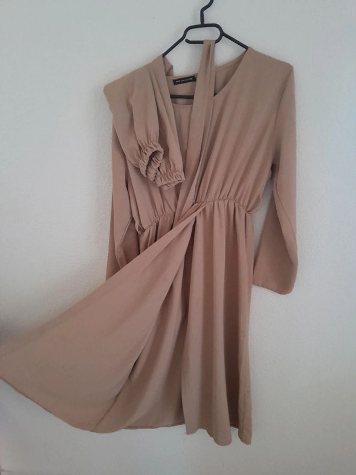 Neuf Ensemble robe cintré avec ceinture ouverture devant. Bonne qualité Pantalon large fluide . Couleur beige