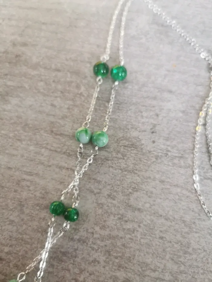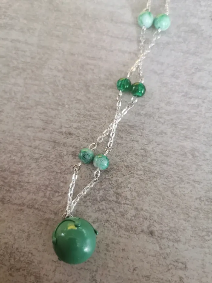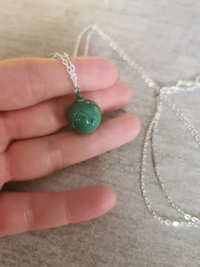 Bola de grossesse confectionné à la mains. Chaque Bola n'a été produit qu'en 1 seul exemplaire pour le rendre unique comme chaque grossesse. Réalisé par une créatrice. Taille de la chaine: 112 cm Taille du bola: 16mm Bola musical pour apaisé bébé avec le son de ses petit grelot. Bola neuf proposé dans une pochette organza et une pochette craft près à offrir ou à s'offrir. Chaine en métal argenté sans plonc ni nickel. J121
