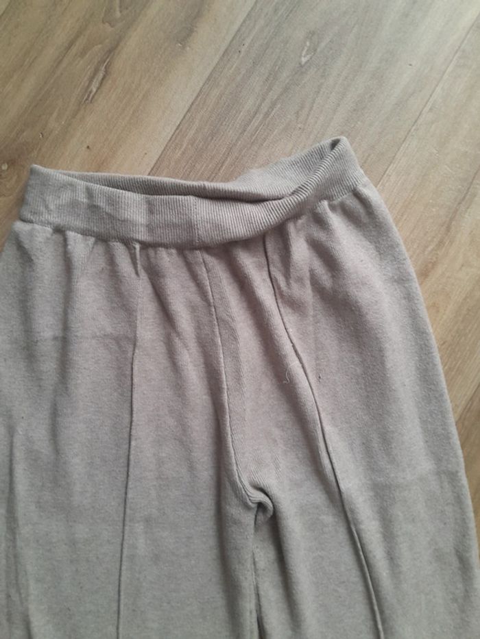Pantalon beige très bonne qualité Satisfaisant défaut petit trou bas à laver pas insisté au lavage et taille grand élastique qui c'est tourné voir photo Longueur 102 cm Taille conviendrais jusqu'à 42