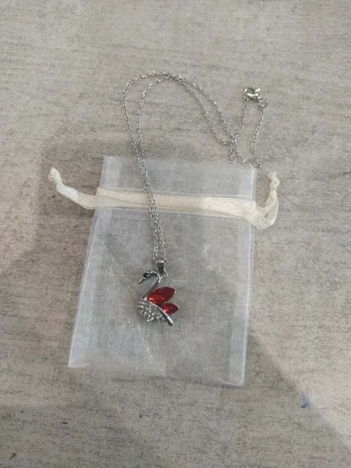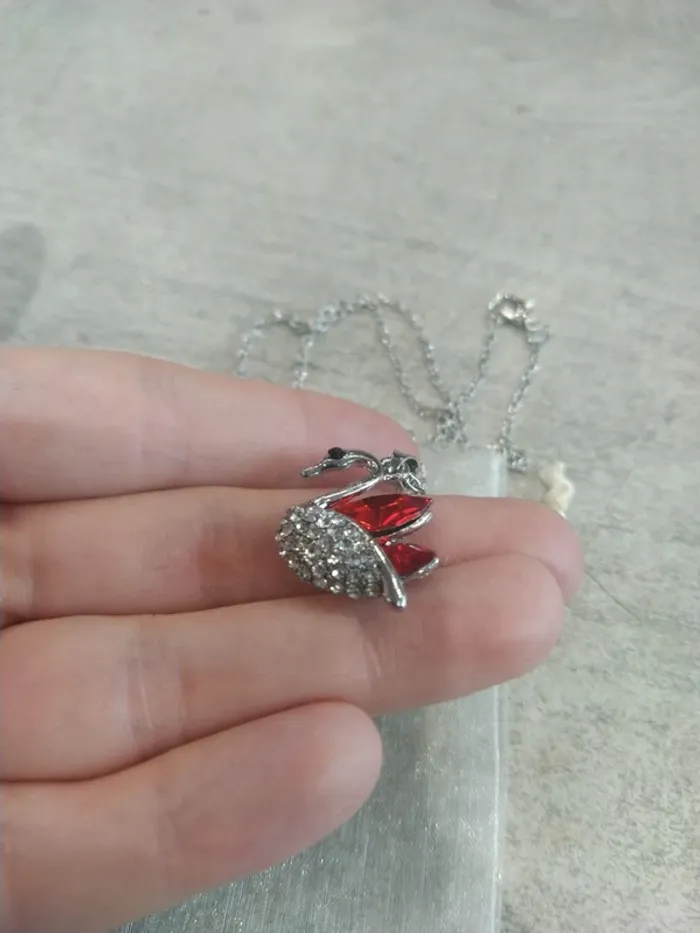 Collier pendentif cygne rouge et argent - photo numéro 1