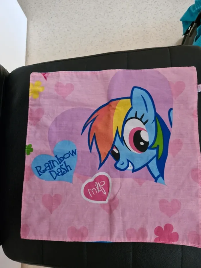 Très jolie serviette de table à l'effigie de Rainbow Dash de My Little Pony. Très bon état. Fait maison par môme sweet môme Très bonne qualité