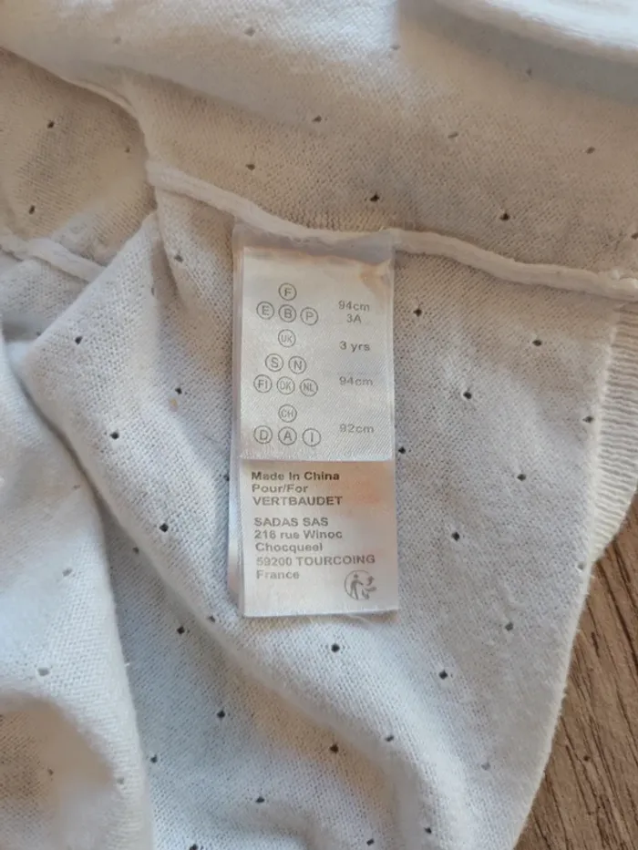 Boléro blanc à boutons, Verbaudet 3 ans ↪️ N'hésitez pas à créer un lot pour obtenir une réduction 🤗